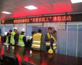 这并不是碧桂园河南区域第一次举办为工友体检的活动。为了关怀一线的城市建设者,保障一线员工身体健康和生命安全,碧桂园河南区域从3月中旬启动了“健康一路伴我行·关爱城市建设者”为主题的民工健康义诊活动。截止到4月10日,驻马店欧洲城项目、商丘天麓项目、郑西龙城天悦项目、武陟碧桂园、尉氏碧桂园等多地项目相继开展了24场义诊活动,5000多名工友享受到了义诊服务。