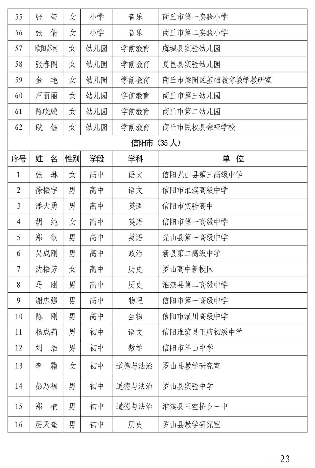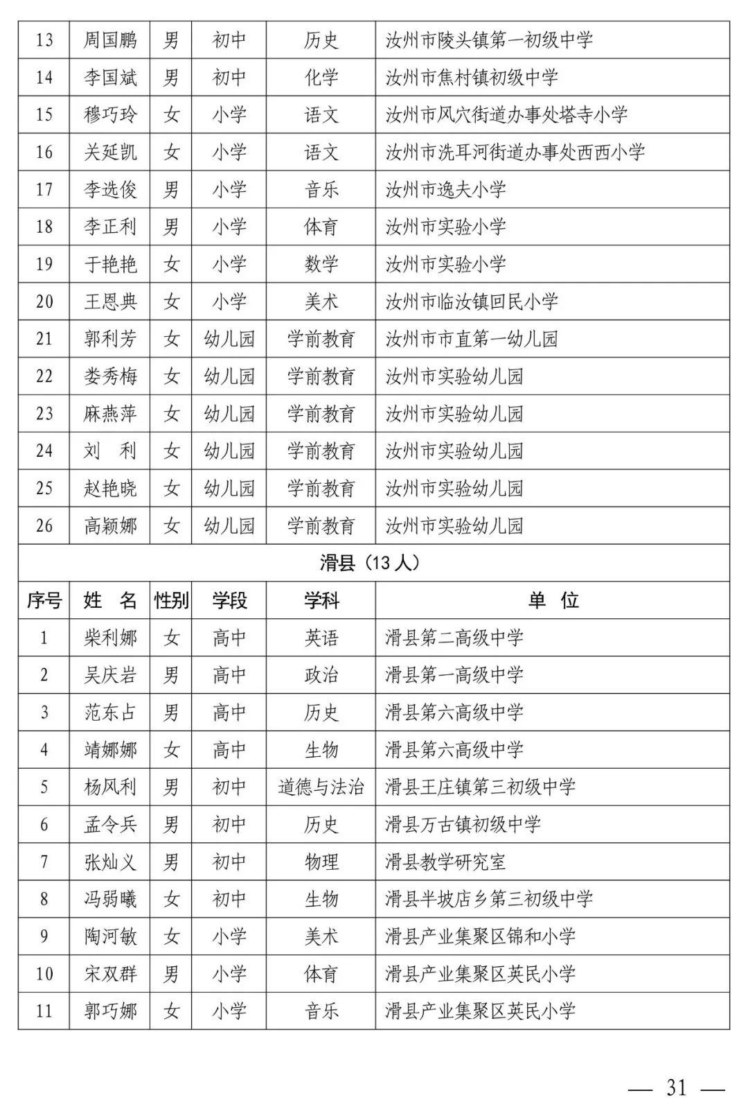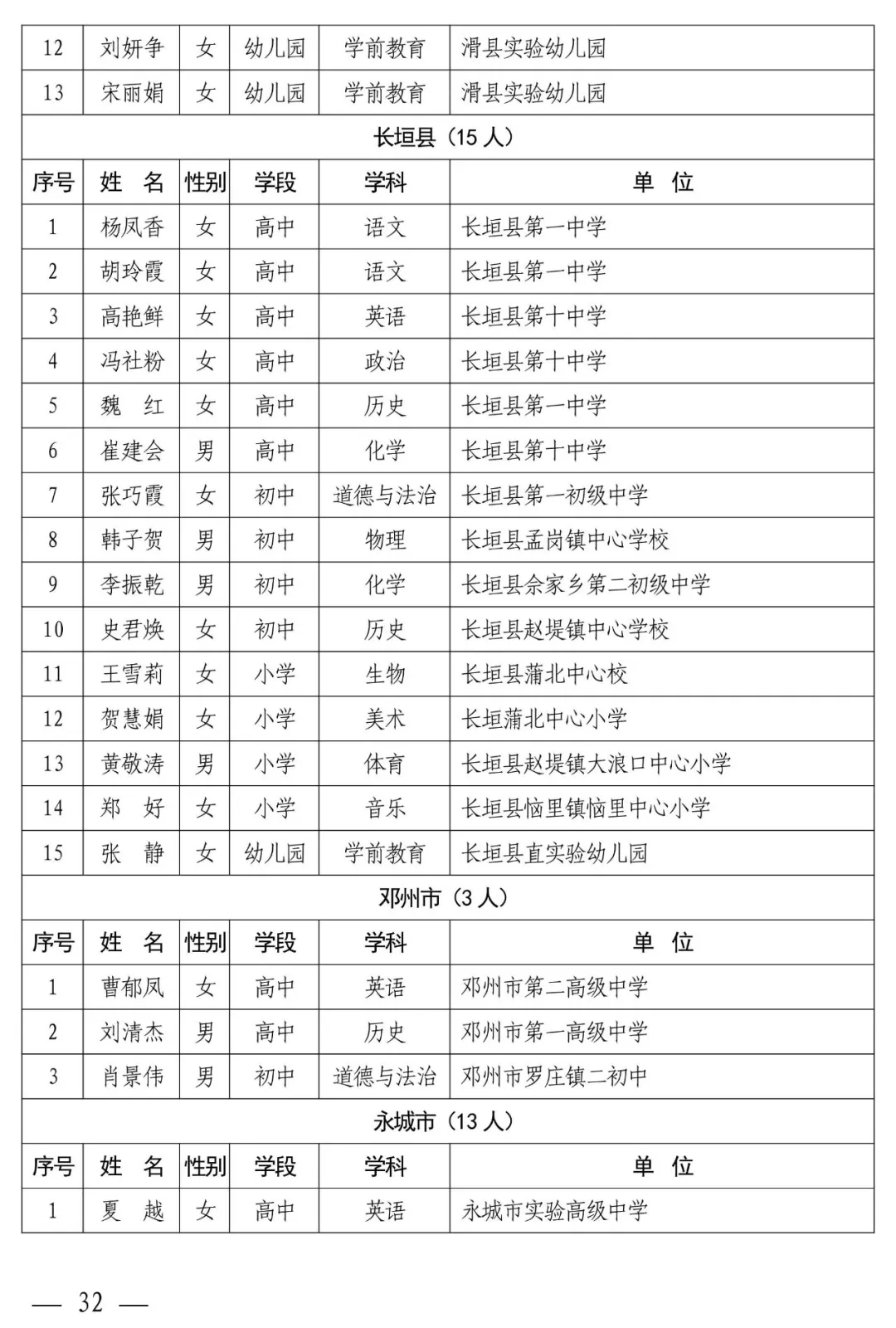 经推荐、选拔、培训、考核和省辖市、直管县(市)教育主管部门确认等程序,省教育厅确定蔡永霞等857名教师为河南省中小学幼儿园名师、黄鹂等6691名教师为河南省中小学幼儿园骨干教师。现将名单进行公示。