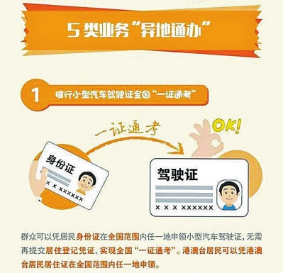 根据公安部发布的消息,今年6月1日起,将全面实现小汽车驾驶证“全国通考”。申请异地考驾照者不再需要提交居住登记凭证;与此同时,还要同步试行大中型客货车驾驶证省内异地申领。对在省内异地申领大中型客货车驾驶证的,申请人可以凭居民身份证直接申请,无需再提交居住登记凭证。