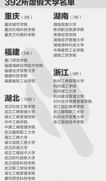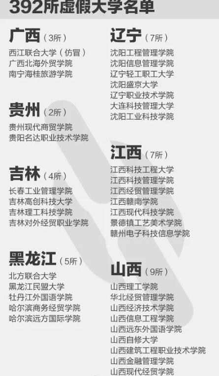 据媒体报道,上大学网可查询到的虚假大学有392所,部分虚假学校被曝光多次,仍换个名字继续存在!小伙伴们赶紧收好!