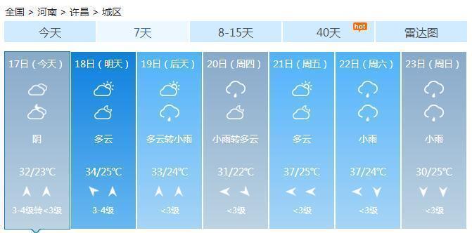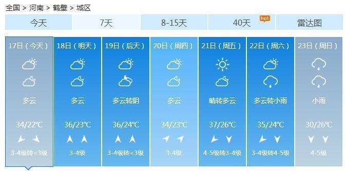 最低温度:西部山区18到20度;其它地区22到24度。18日,东南部阵雨转多云;其它地区多云到晴天。19日,西部、南部晴天到多云;其它地区晴天间多云。18到19日,北部最高温度将达36到38度。