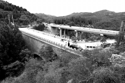 回忆修这段路,老队员讲得最多的,是“五千斤大米桥”的故事。那时平五路全线建得差不多了,就剩下两道山沟跨不了,两座桥架不起来:经费不够。两座桥中,桃花掌沟上那座最难修。如果建造一座拱桥,初步估算投资要86万元,但郑永和手上只有10多万元。他们一次次测量,定了一个新方案:在沟底建一个“小拱”通水,拱洞上与桥两面公路路面拉平。