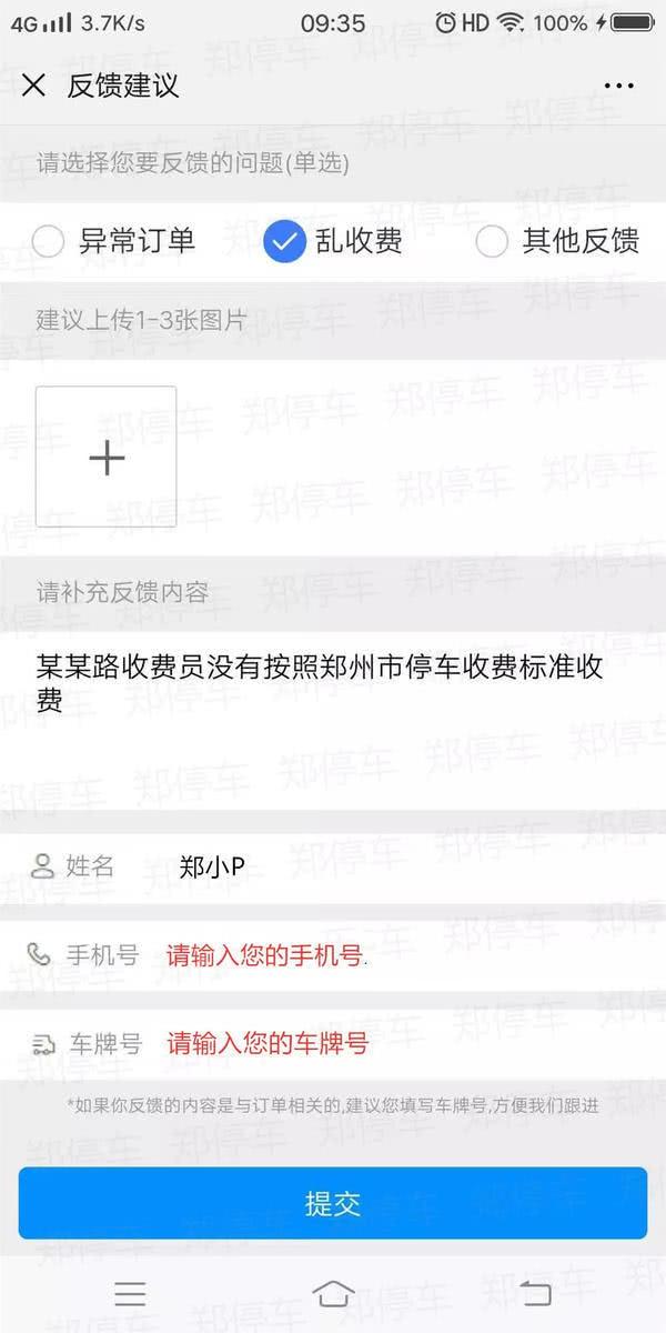 1、 发现有不合规的收费行为时,可点击"郑停车"公众号菜单栏"投诉建议",对不合规行为进行举报。