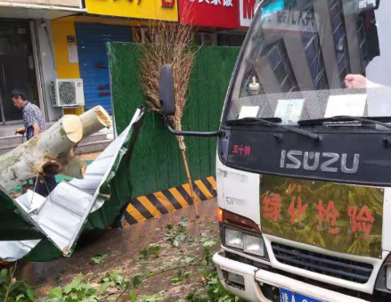 8月6日晚9时20分许,郑州市二七区建中街巡防队员巡逻到辖区交通路时,看到交通路陇海路往南100米路东人行道上的一棵行道树因降雨连根拔起,正好砸中旁边的一辆面包车。