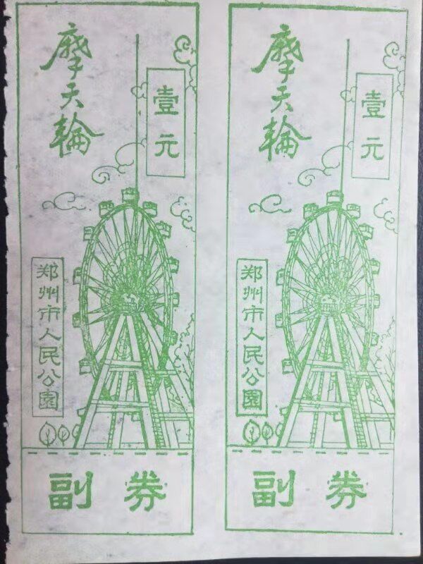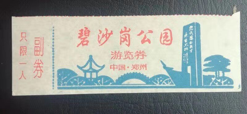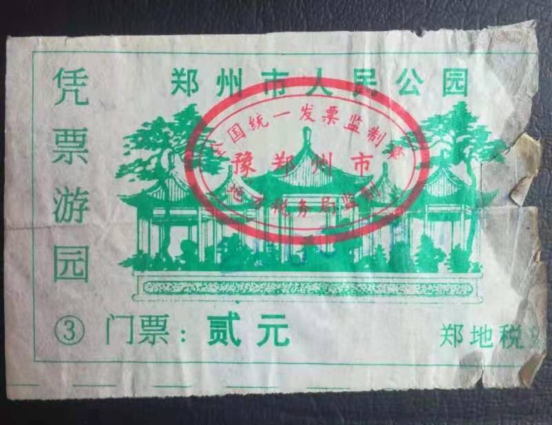 王怀民听父亲说,郑州市人民公园1951年辟为公园,1952年夏天正式对外开放。那时的门票,个人购买是200元一张,团体购买是100元一张,因为当时用的是第一套人民币,折合成现在的人民币就是2分和1分。那时的门票没有副券,进门时检票员会撕去一个角,以示此票已经用过了。
