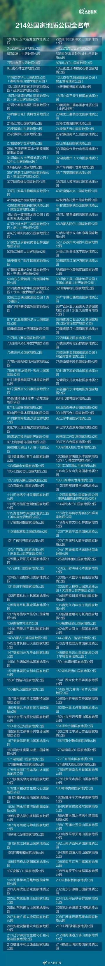 至此,我国正式命名的国家地质公园已达214家!全名单在此↓↓↓