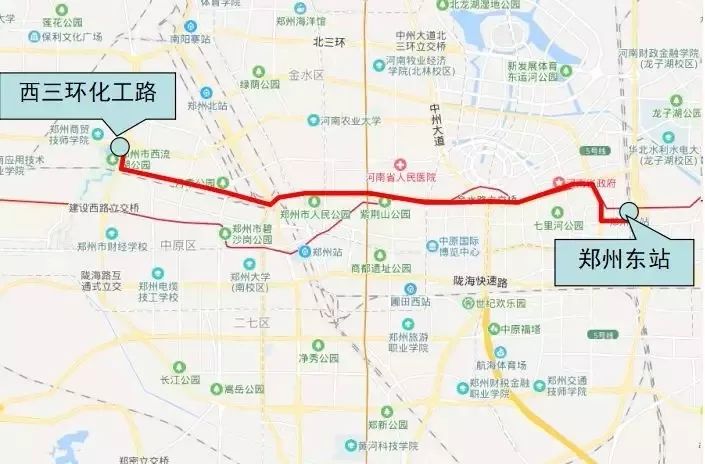 途径道路: 长兴路、三全路、中州大道、东风东路、东风南路、经开第八大街。