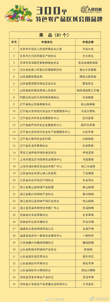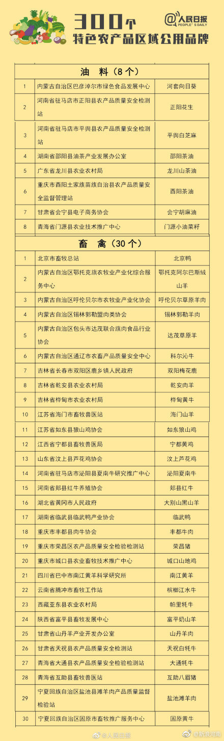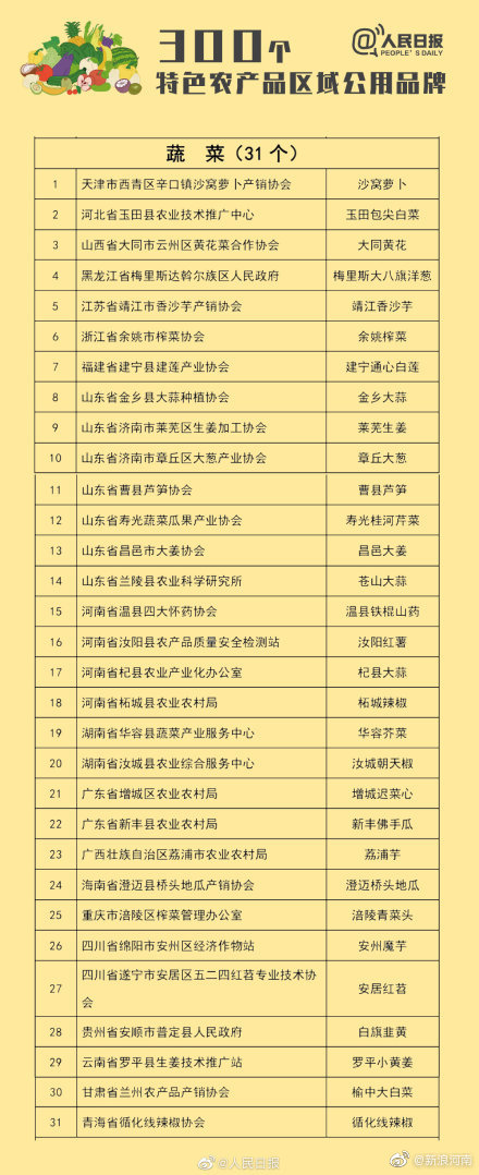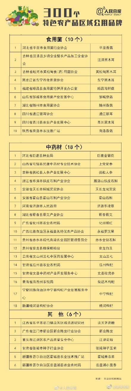 中国农业品牌目录300个具有代表性的特色农产品区域公用品牌发布,河南16个入选:灵宝苹果,兰考蜜瓜,西峡猕猴桃,温县铁棍山药,汝阳红薯,杞县大蒜,柘城辣椒,新乡小麦,永城富硒小麦粉,正阳花生,平舆白芝麻,泌阳夏南牛,郏县红牛,郑州黄河鲤鱼,信阳毛尖,济源冬凌草!