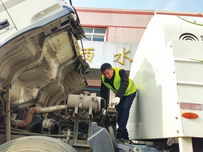 郑州市城区道路洒水降尘管理中心的环卫工贾三岛