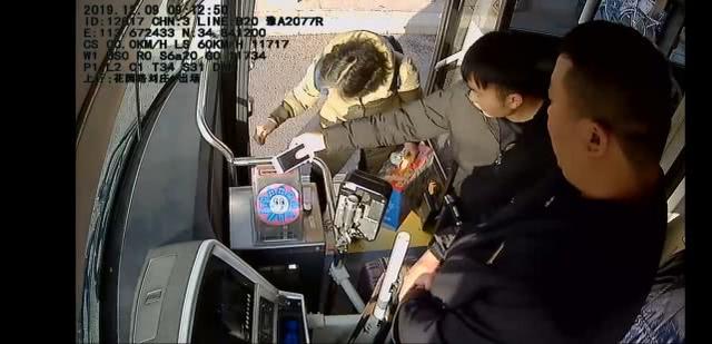 12月9日上午,郑州B20路公交车,一名小伙子拉着行李箱上车。