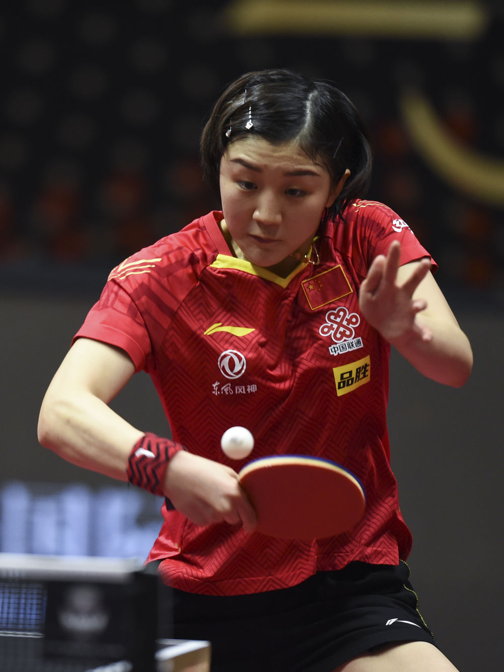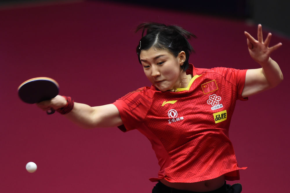 ↑3月8日,陈梦在比赛中回球。