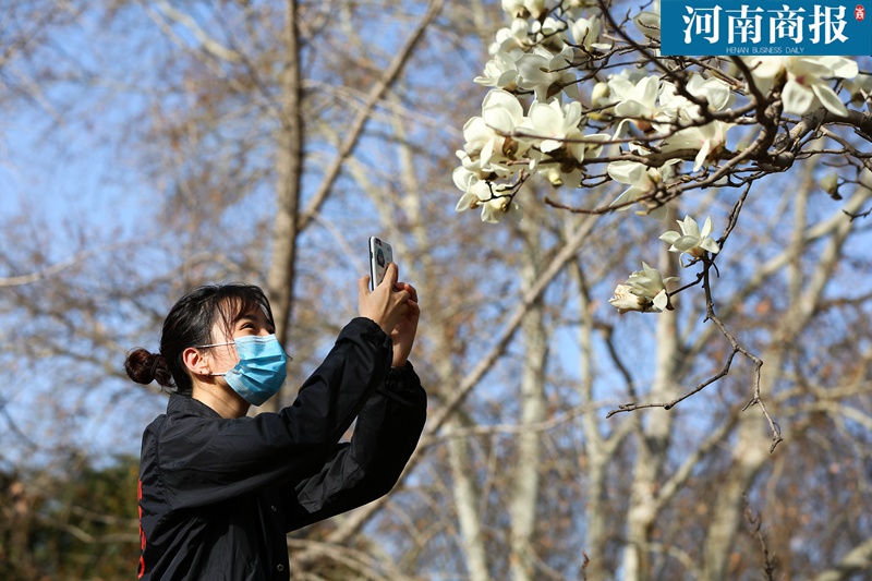 暖阳下,随着全市无新增确诊病例天数的增加,也有不少市民走出家门,戴着口罩赏花。口罩挡住了花香,却为人们带去一份心安。
