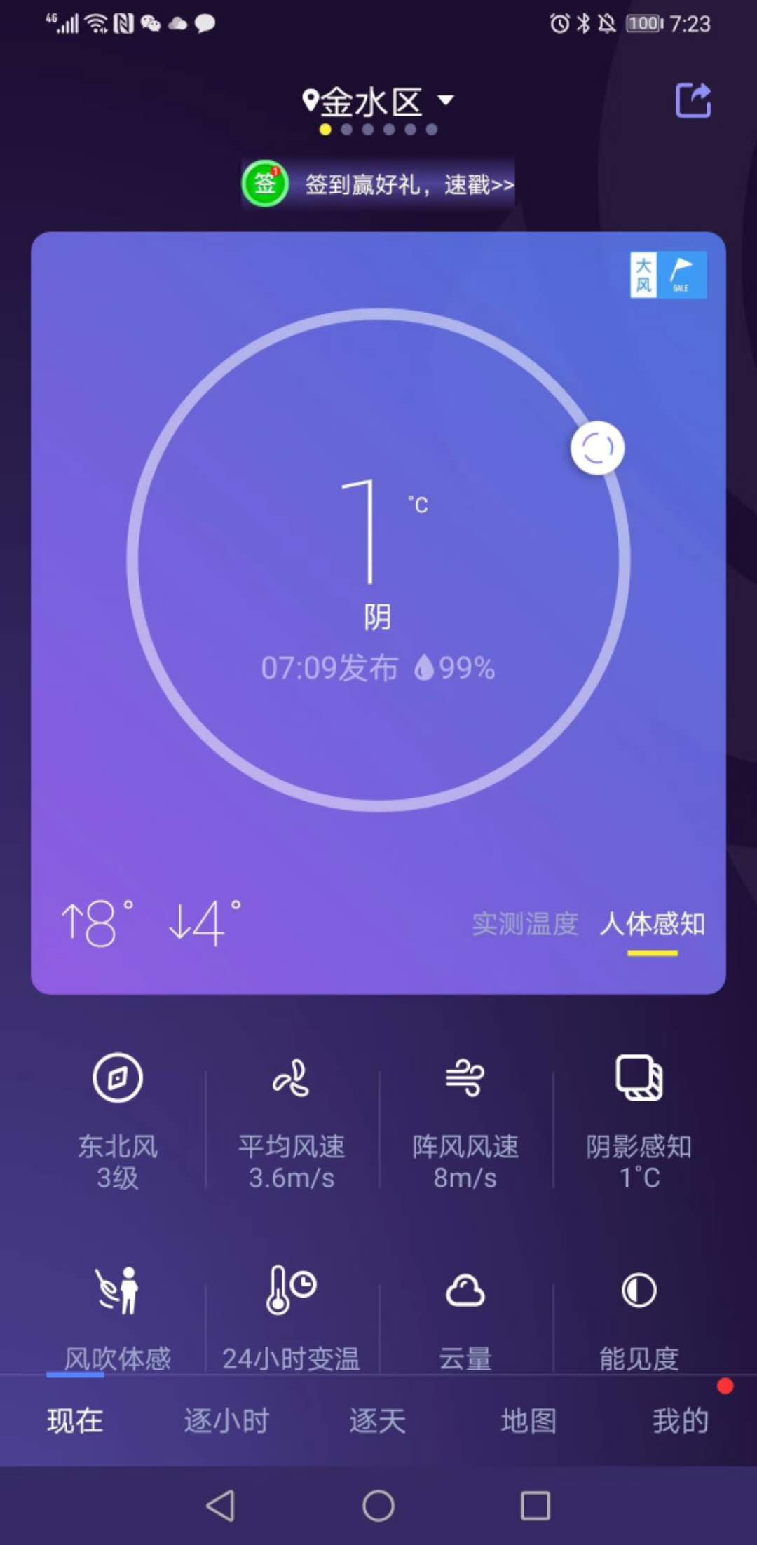 昨天一夜雨,今晨一天寒。今天早上7时,金水区的最低气温已经跌到了5℃。看起来距离0℃还有一定距离,但体感温度却已经跌到了1℃,这已经是临近冰点的温度了。今天,将是近段时间以来气温最低的一天。