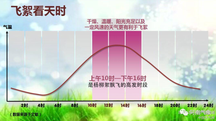 需要注意的是,早晨和晚上,气温较低,风力小,杨柳絮喜欢宅着不动。在晴朗的白天,10点至16点是它们活跃的时间。因为该时段随着太阳辐射增强,温度升高,气流扰动增强,有利于杨柳絮“放飞自我”。
