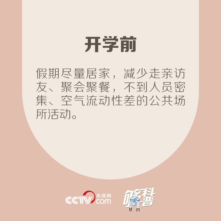 央视网消息:随着疫情防控形势持续向好,各地陆续进入“开学季”。开学前应该做好哪些准备?返校途中如何做好防护?@返校学生,请查收这份开学防疫指南。