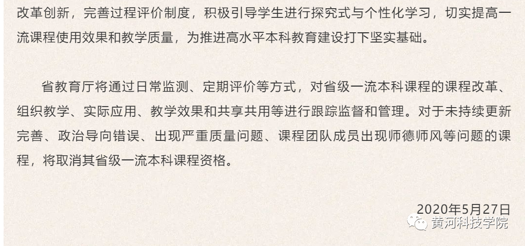近日,河南省教育厅公布了首批河南省一流本科课程认定结果,黄河科技学院四门课程获批。