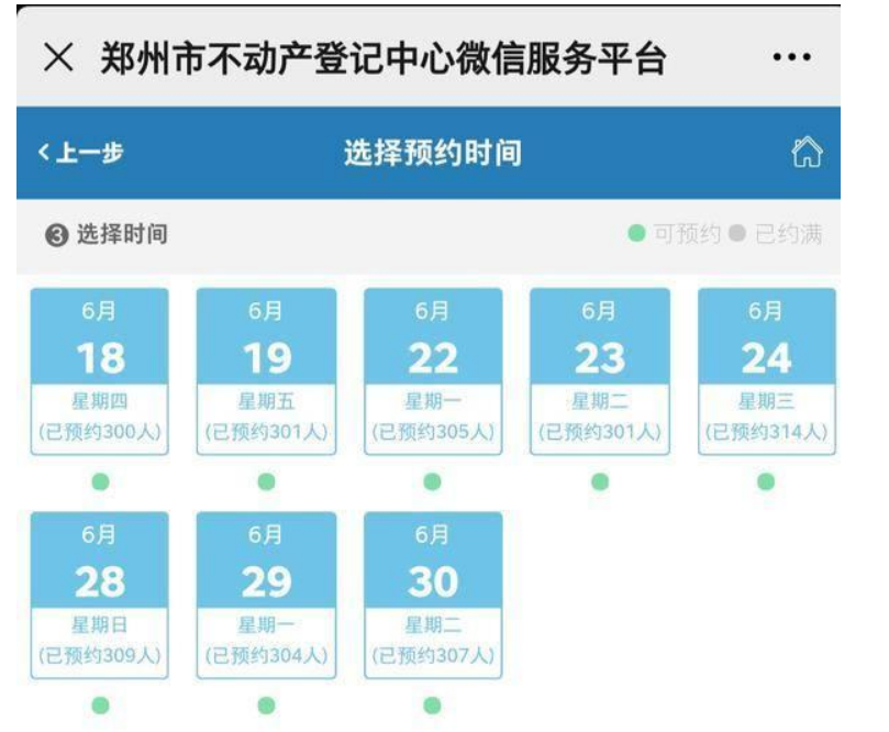 但是,河南商报记者发现,当网上预约三全路服务大厅时,系统虽然标识为可预约,但逐一预约每一天,发现6月份所有的日期都提示:“由于微信预约量较大,已转入现场取号模式。”系统显示每天的预约人数都在300人以上。