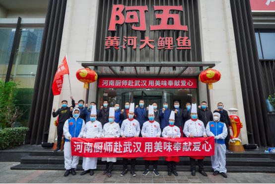 作为发起人及组织者,阿五黄河大鲤鱼派出四位厨师,他们都是勇敢的逆行者。他们不负众望,把家乡的温暖和美食带给了身在方舱医院的医护战士们,和他们并肩站在了抗疫前线。