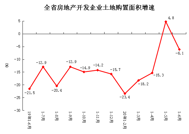 1-6月份,房地产开发企业土地购置面积272.14万平方米,同比下降6.1%,1-5月份为增长4.8%;土地成交价款203.68亿元,增长27.5%,增速回落29.5个百分点。