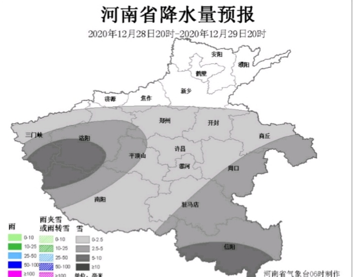 受寒潮影响,28日夜里到29日白天,黄河以南大部地区雨夹雪转小到中雪,西部、东南部部分大雪,其它地区有零星小雪。