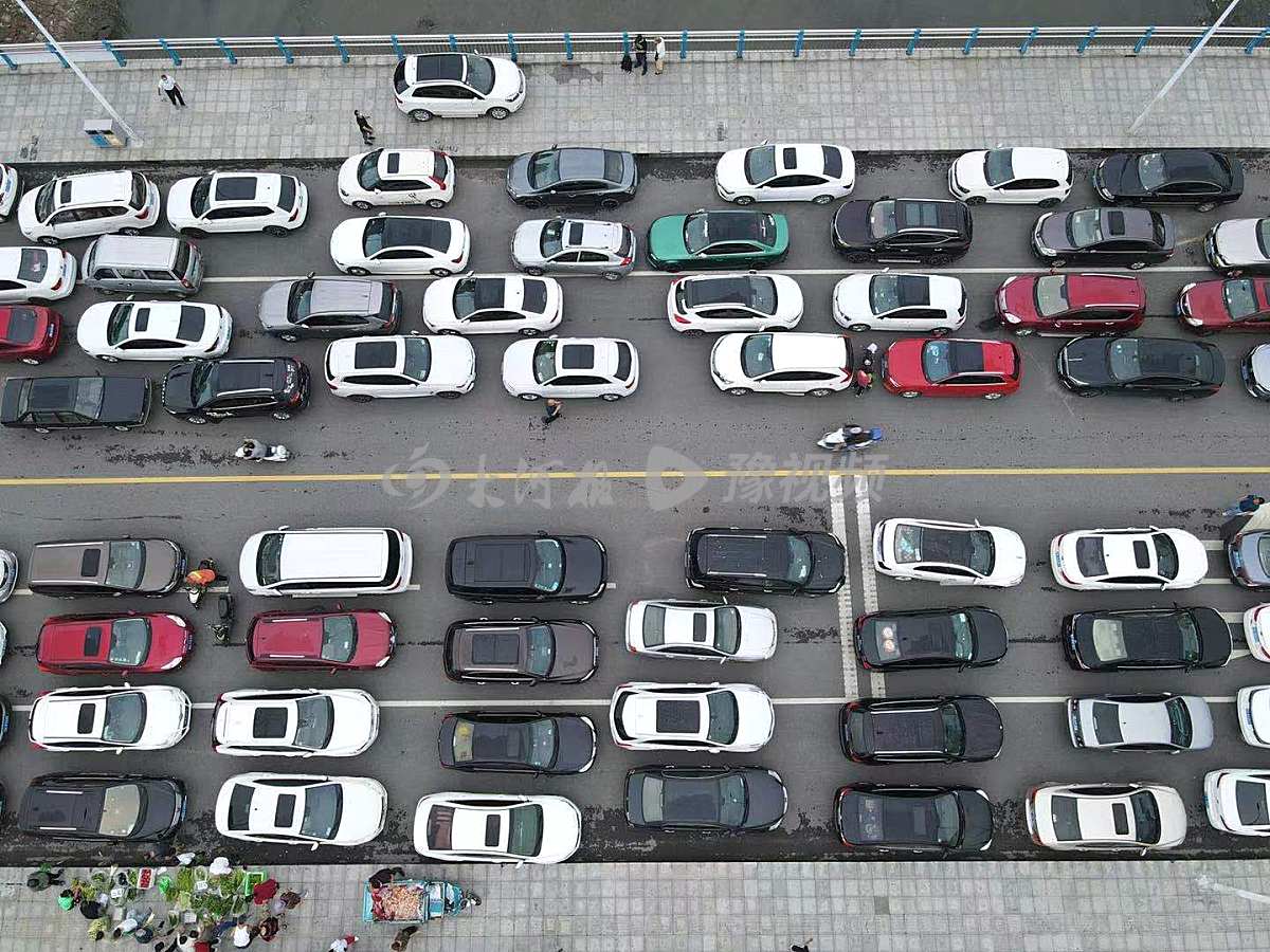 这还算规矩的。在政七街跨东风渠桥上,由于此处地势相对较高,大河报记者注意到,双向六车道的桥面几乎被占满,仅留下中间一道车辆能通行的过道。