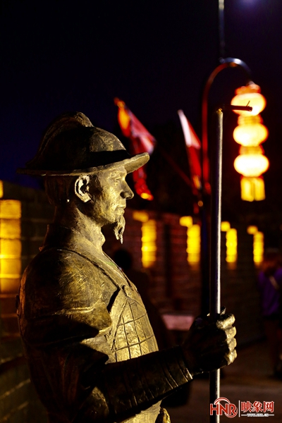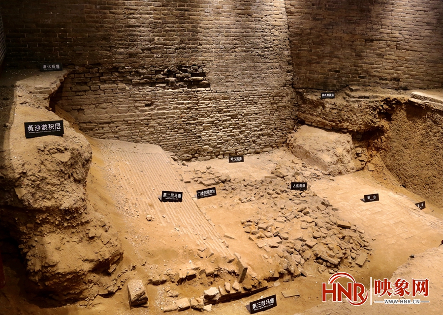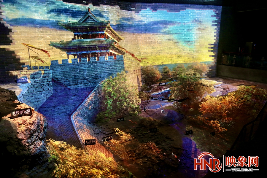11日晚,采访团在大梁门附近的古马道遗址博物馆观看《微梦大梁门》,直观城摞城遗址全貌。