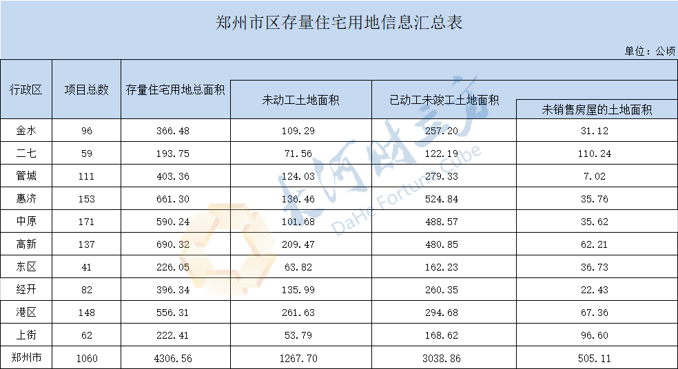 郑州市存量住宅用地总面积为4306.56公顷(约64598.4 亩)。从区域分布上来看,第三季度高新区存量住宅用地面积最大,为690.32公顷,其次是惠济区661.30公顷。存量总面积最少的是二七区,仅193.75公顷。