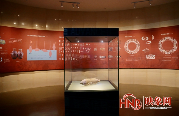在文物展厅,众多造型精美、花纹独特的陶器让人赏心悦目。巧妙的构思、严谨的布局、明快的色彩对比,使大河村彩陶集中体现了中原地区仰韶文化的时代风貌。