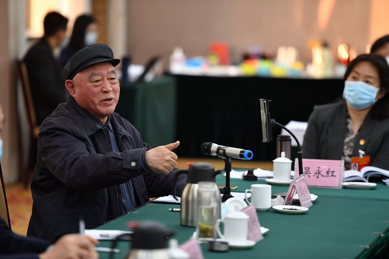 代表热议《政府工作报告》。河南日报记者 史长来摄