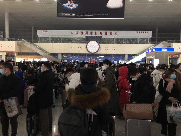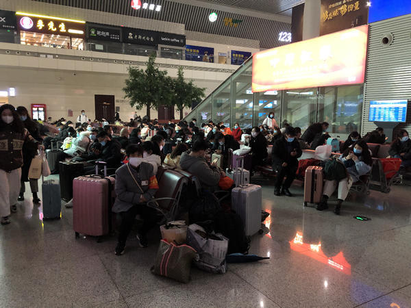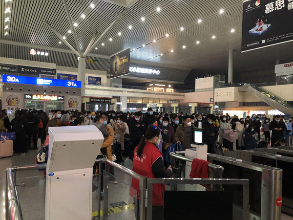 站台前排起了长长的队伍。熟悉的春运感觉又回来了。