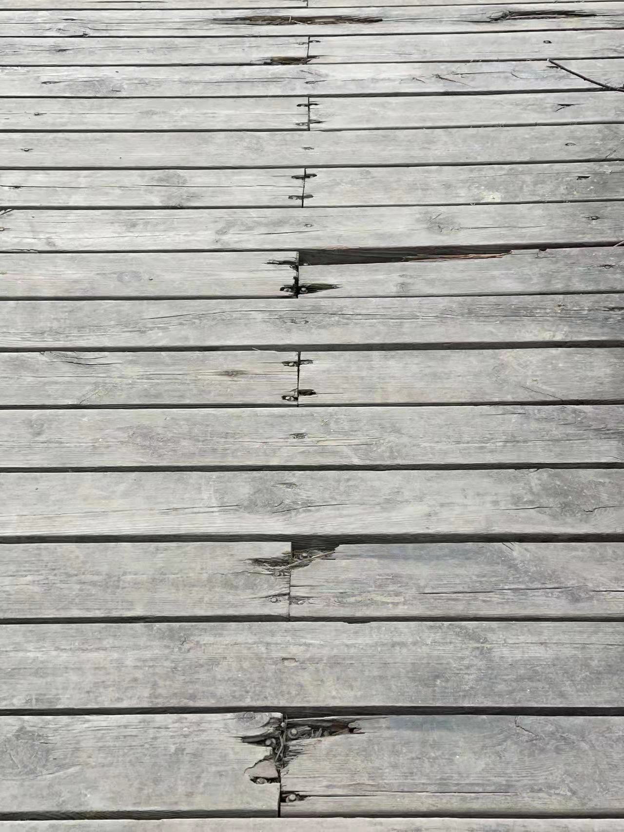 部分木栈道被冲垮,有的存在鼓包、脱落、空洞问题。针对于此,他们正在安排人员对存在问题的木栈道进行整修、更换,尽可能多地减少安全隐患。