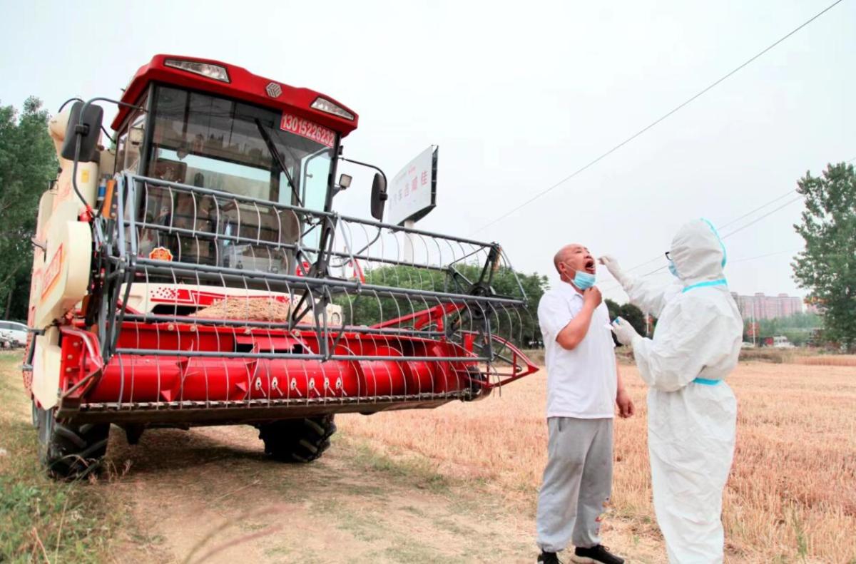 在该区蒲山镇师杨庄村,刚从河北赶来的跨区农机作业手郑士卫团队四人见到了该镇负责采集核酸的医务人员,通过动态联络、闭环管理、确保落地即采,在不耽误收割作业的同时确保疫情防控安全。此外,该镇为确保不误农时,提前开展农机需求摸排,联系农机企业到镇开展夏收工作。据了解,该镇现有6万余亩土地待收割,全镇外地农机手现有60余人,每日安排医护人员,分片区到农机手驻地为其免费采集核酸,做到一天一检。