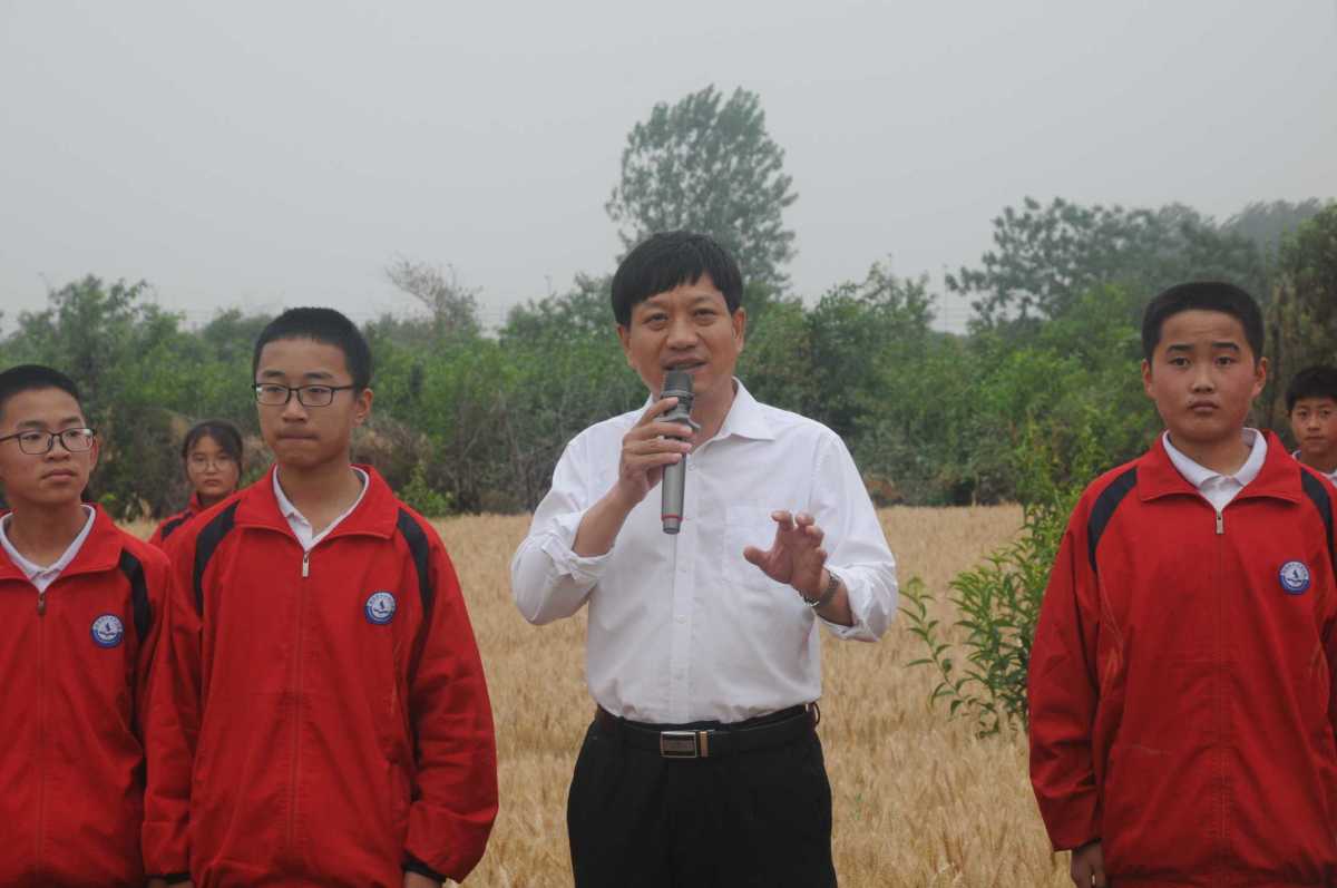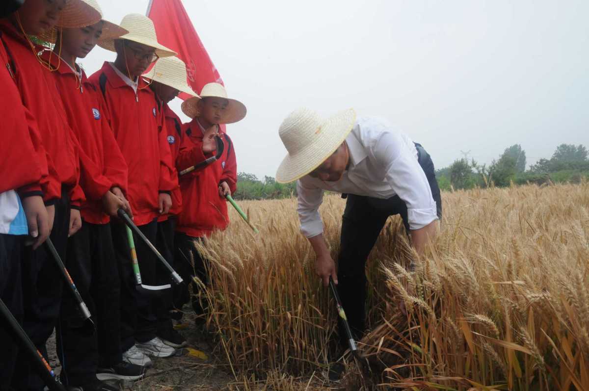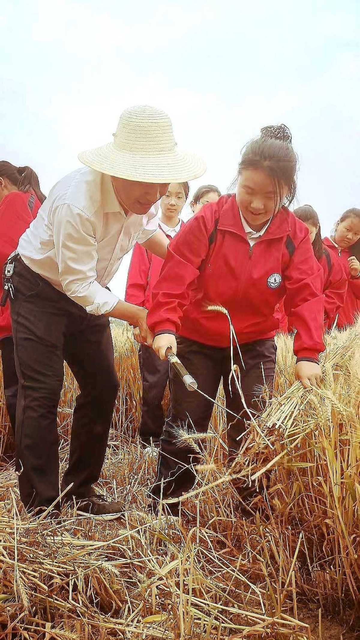 孙群杰为学生们讲解了小麦的生长周期、收割小麦的注意事项。在孙校长的示范教导下,学生们一个个拿起了镰刀。