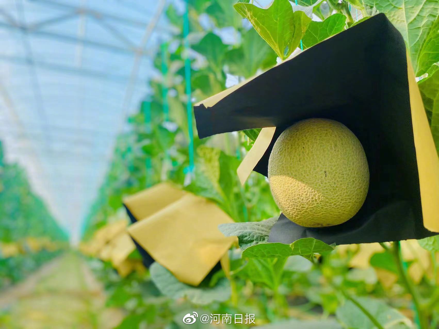 还有一周就将成熟的蜜瓜,一根秧上只长一个瓜,果实被纸袋包裹精心呵护。6月24日,在商丘市睢县周堂镇黄堂村的云瓜园种植基地,记者看到了这样一幕。