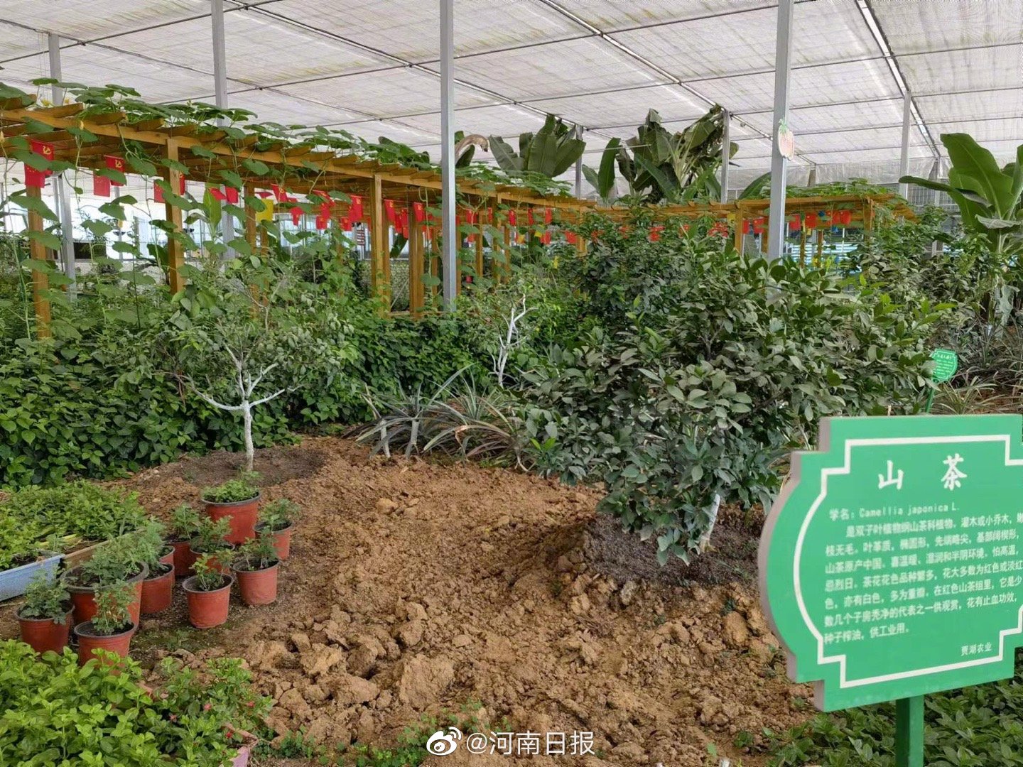 #乡村振兴看河南#【这样种田你见过吗】在舞阳县的贾湖田园综合体,农民种田不再是单纯的面朝黄土背朝天,而是透着“科技范儿”。大棚外是逼近40摄氏度的高温,大棚内却透着一丝清凉。这里种植的包括无土栽培生菜、新品种小番茄、热带水果等。“这株南瓜秧结出的南瓜最小也有两百斤!”工作人员自豪地介绍道。