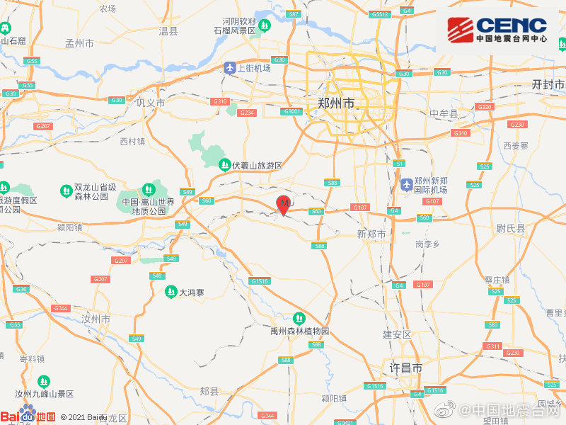郑州新密市发生3.1级地震,震源深度10千米