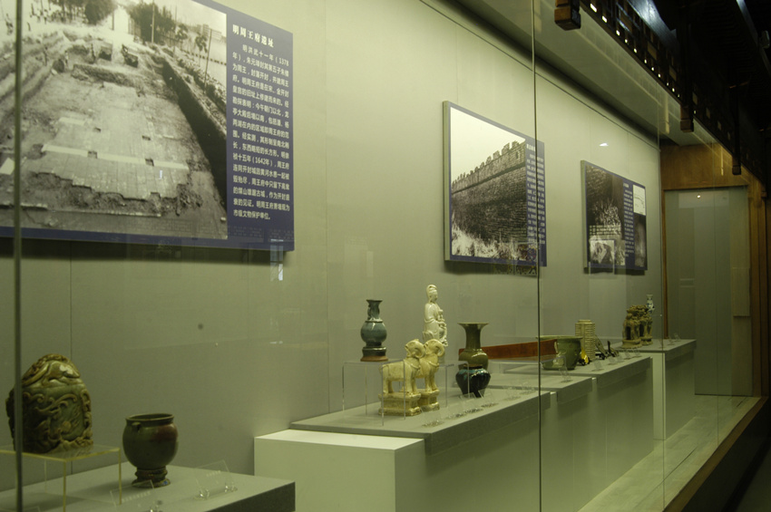 明洪武十一年(1378年),朱元璋封其第五子朱橚为周王,封藩开封,并建周王府。明周王府是在宋、金开封皇宫的旧址上修建而来的。经勘探表明:今午朝门以北,龙亭大殿后墙以南,包括潘、杨两湖在内的区域即周王府的范围。经实测,其形制呈南北稍长,东西略短的长方形。明崇祯十五年(1642年),周王府连同开封城因黄河水患一起被毁殆尽,周王府中只留下高耸的煤山雄踞古城,作为开封盛衰的见证。明周王府萧墙现为市级文物保护单位。