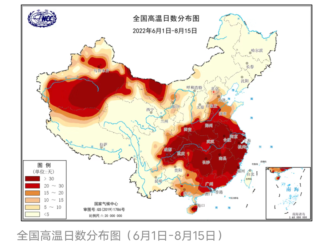 这一论断,是综合考虑高温热浪事件的平均强度、影响范围和持续时间。此次过程具有持续时间长、范围广、强度大、极端性强等特点。
