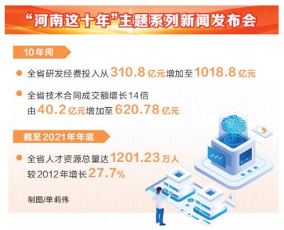 “这一时期成为河南科技创新实力提升最快、创新成果产出最多、对经济社会发展贡献最大的时期。”9月19日,记者从省委宣传部举行的“河南这十年”主题系列新闻发布会科技创新专场获悉,党的十八大以来,我省科技创新工作成绩显著,为经济社会高质量发展不断作出新的贡献。