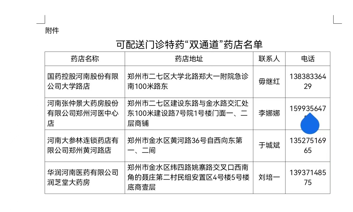 10月28日,记者从郑州市医保中心获悉,为进一步加强疫情期间郑州全市参保人员用药需求保障,郑州新增2家可配送门诊特药的“双通道”药店。目前,可配送门诊特药“双通道”药店已达6家。