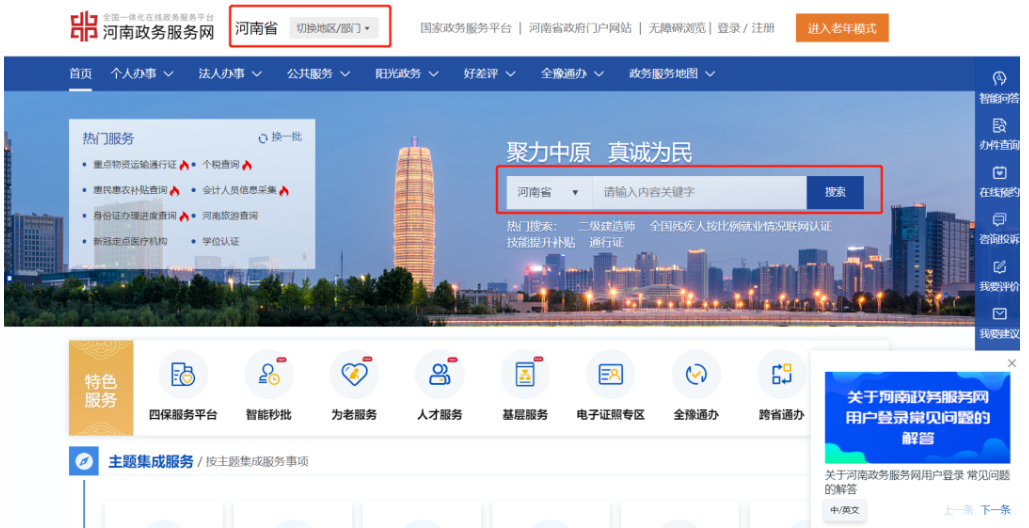 百度搜索“河南省政务服务网”,选择对应地区后即可搜索各类办事项目。