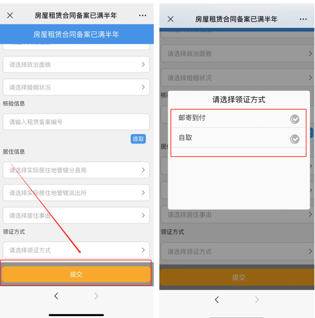 第二步:按照要求详细填写个人信息,自主选择领证方式后点击“提交”即可。