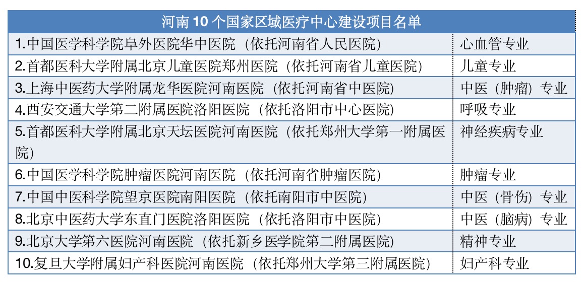 在2019年,国家公布《区域医疗中心建设试点工作方案》后,确定在河南、河北、山西、辽宁、安徽、福建、云南、新疆这8个患者流出多、医疗资源薄弱的省份开展试点工作。