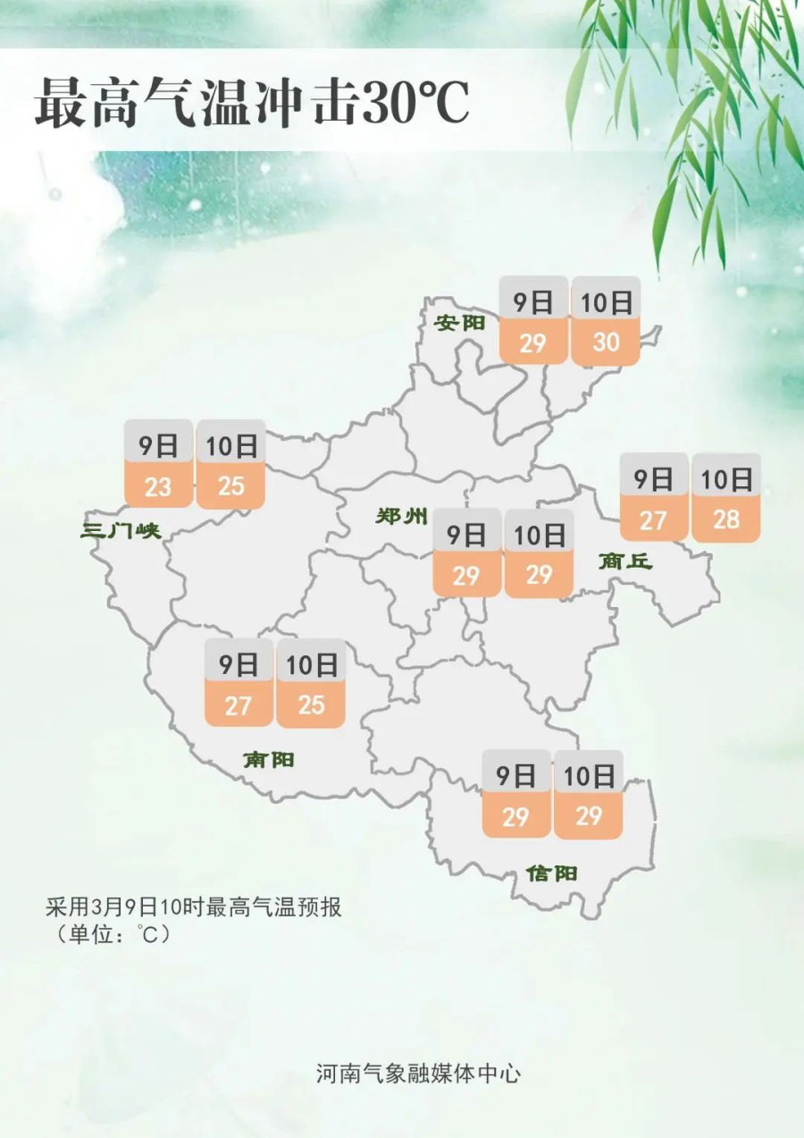 今天下午到夜里,晴天间多云。偏西风转西南风3到4级。最高温度:28到29度;最低温度:12到13度。
