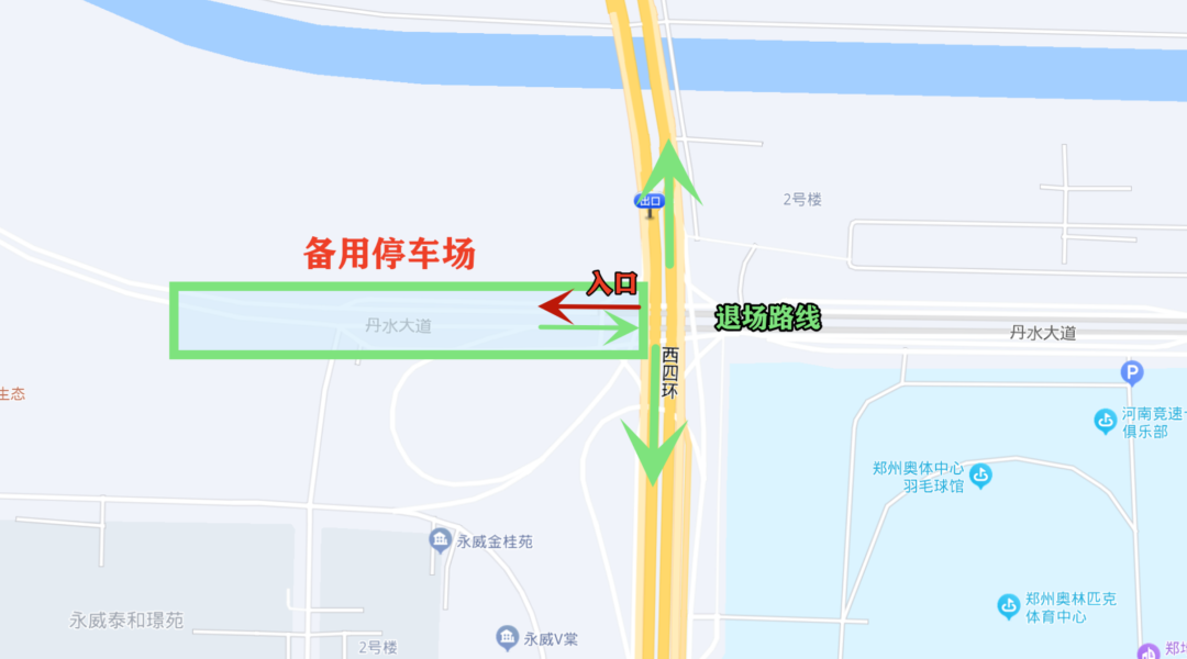 出口:停车场东门(丹水大道长椿路),所有车辆经丹水大道向西驶离