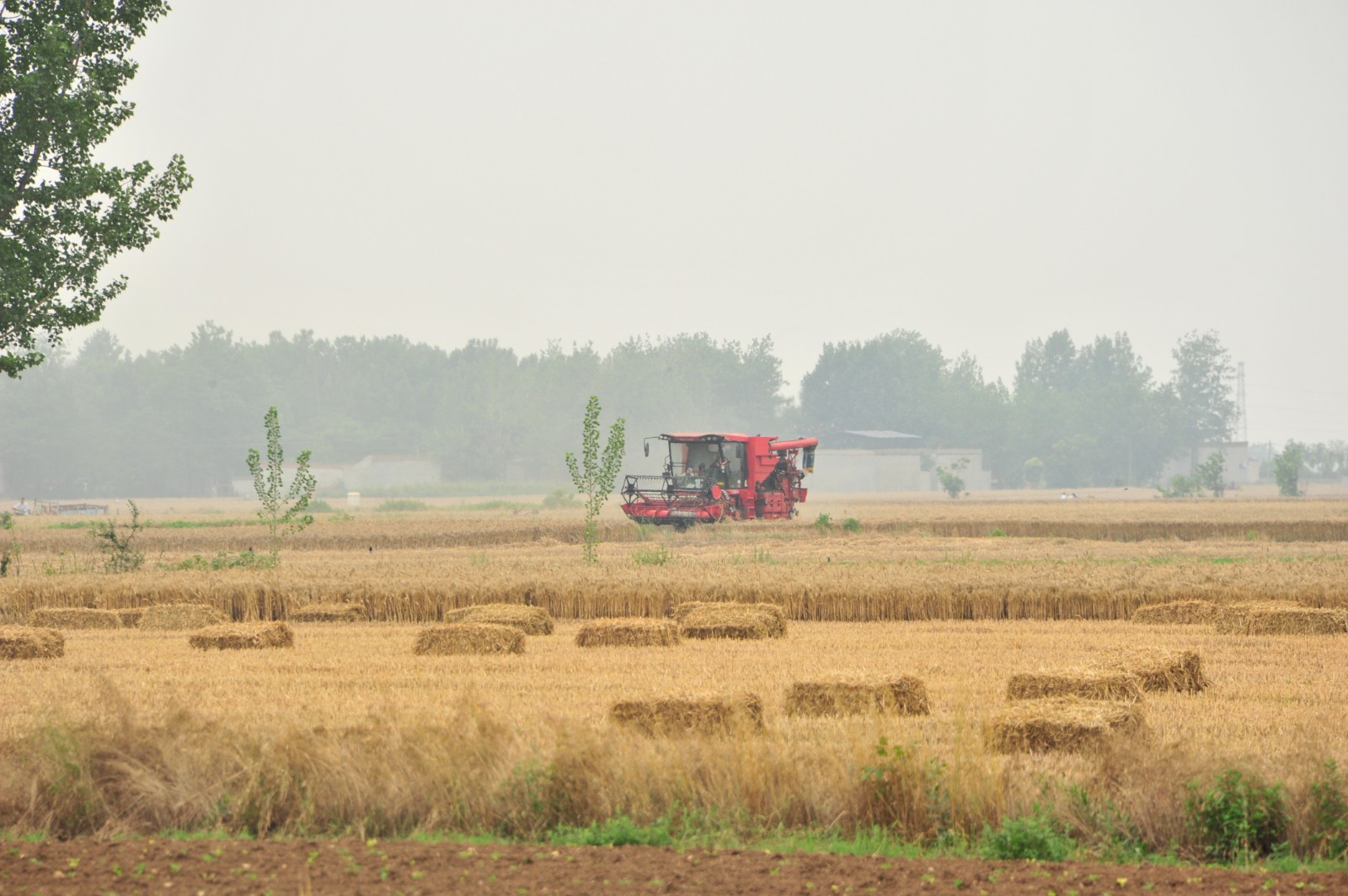5月30日,在河南省南阳市镇平县,小麦陆续成熟收获。该县今年种植小麦82万亩,目前北部山区及丘陵地带已陆续成熟并收获20万亩,南部小麦主产区也日渐成熟。时君洋 摄