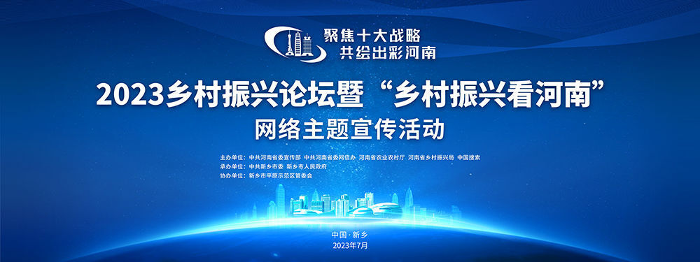 “聚焦十大战略 共绘出彩河南 2023乡村振兴论坛暨‘乡村振兴看河南’网络主题宣传活动”由中共河南省委宣传部、中共河南省委网信办、河南省农业农村厅、河南省乡村振兴局、中国搜索共同主办,中共新乡市委、新乡市人民政府承办,新乡市平原示范区协办。锚定“两个确保”,实施“十大战略”,活动旨在推动河南农业农村高质量发展,为建设现代农业强省营造良好的舆论氛围。