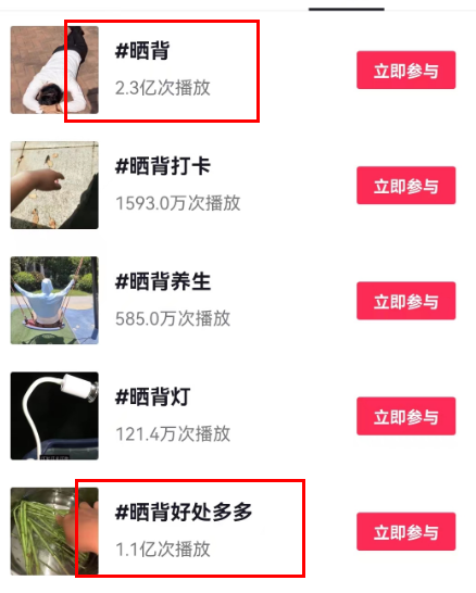 随后,记者在相关视频下点进以“晒背”为标签的话题区,发现该话题区的视频已经有累积超2亿的播放量,且热度还在持续上升。