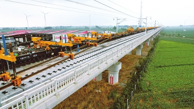 7月12日,随着最后一组500米长钢轨在清丰特大桥顺利铺设到位,济郑高铁濮阳至鲁豫省界段高速铁路正线铺轨全面贯通,为如期实现开通目标奠定了坚实基础。