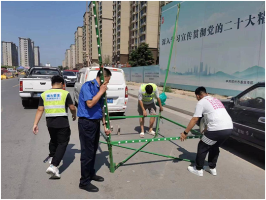大河网讯 为给广大辖区群众营造一个整洁、优美、安全、有序的城市环境,自7月初开始,郑州市金水区杨金路街道城市管理办公室重点围绕占道经营、非机动车整治、燃气安全、非法小广告、环境卫生整治等方面,持续开展专项行动,全面推进街面环境秩序问题整治,进一步提升辖区整体面貌。